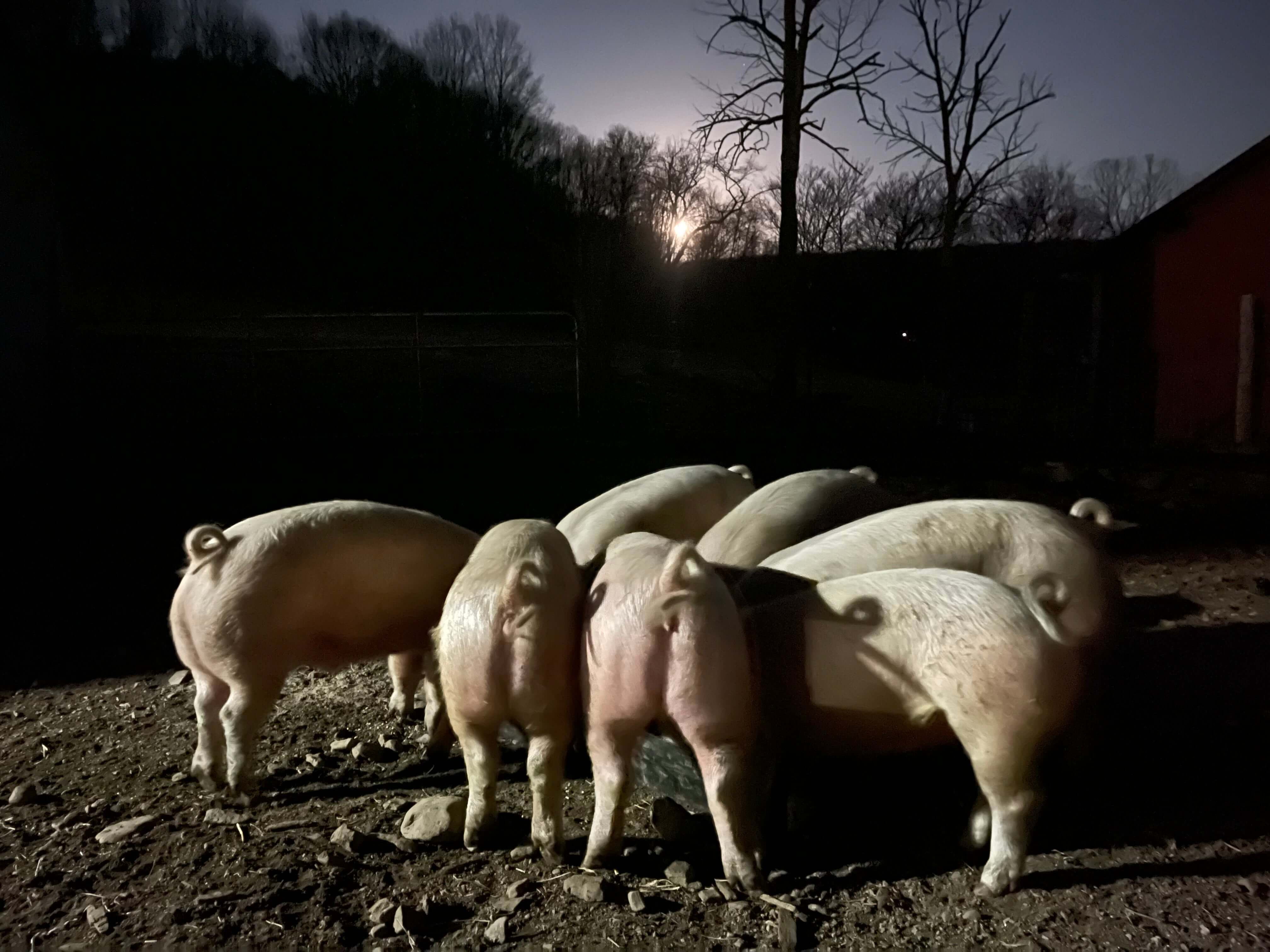 Our animals live outdoors year-round when temps allow, grazing fresh grasses and foraging naturally, resulting in healthier, more flavorful meat. - Local, Nutrient-Rich Feed